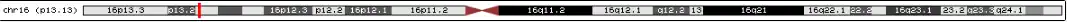 TVP23A is located at cytogenic band 16p13.13, on the negative strand of Chromosome 16.[6]