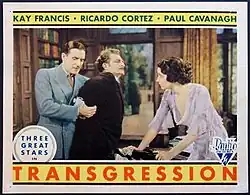 Transgression is a 1931 pre-Code American drama film directed by Herbert Brenon, using a screenplay written by Elizabeth Meehan, adapted from Kate Jordan's 1921 novel, The Next Corner. The film stars Kay Francis (on loan from Paramount), Paul Cavanagh (on loan from Fox), and Ricardo Cortez, and deals with the romantic entanglements of a wealthy English businessman, his wife and a Spanish nobleman.