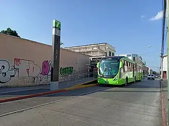 Line 12 starts from Zone 1 in Guatemala City, it runs through the Civic Centre, Bolivar Avenue, Trebol Station, Raul Aguilar Batres Way, and finally terminating at Centra Sur in Zone 12 of neighbouring Villa Nueva city. The line was certified as "Gold" under the BRT Standards in 2014.[9] In the 2023 service update, all direct transfers were removed, meaning passengers traveling on the line can only connect to other lines by walking a short distance to nearby stations. Additionally, several stations in Zone 1 were closed, while Santa Cecilia station was added.