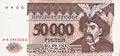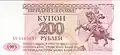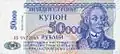 | 50,000 rubles | Blue | Alexander Suvorov overprinted on a 5 ruble note, with a holographic seal containing his equestrian statue in Tiraspol and the value "50000" on front | Transnistrian Supreme Soviet | 1994 | 1996 | |||