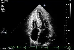 Cardiac MRI can be used to distinguish it from hypertensive heart disease.[1][3] This shows a thicker interventricular septum.[3]