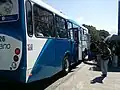 The system has faced numerous controversies that have had major impacts on its operations and have brought its effectiveness into question. According to passengers, the gates installed inside buses to prevent fare evasion on the initial units are too small, making it quite difficult for people with disabilities, overweight, or mobility devices to get through.[17] The introduction of the fare payment card was also quite controversial, as its deployment faced numerous challenges to getting information about where to get the card, and how to use it.[18] People with disabilities were also quite critical of the service, as it rolled out with conventional units requiring users to climb a set of stairs, and were not fitted with wheelchair lifts. This is despite the project's initial promise of removing accessibility barriers for public transit. Low-floor units were eventually introduced by contracting out some operations to private bus companies who imported decommissioned city buses from the U.S.[19] Additionally, senior citizens were promised free-fares. Initially throughout the day, then reduced to only during off-peak periods. However many contracted operators have refused to honour the complimentary service for seniors as part of disputes regarding fuel subsidies, leading the Human Rights Bureau to intervene begin enforcement on several routes.[20]