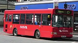 In June 1998, National Express commenced operating routes C1 and 211 under the Travel London brand, using the same symbol and typeface as sister brand Travel West Midlands. In August 2000 National Express sold the business to Limebourne, who in July 2001 sold out to Connex. In February 2004, National Express repurchased the business.[2] Further expansion in 2005 saw the purchases of the London bus operations of Tellings-Golden Miller with a depot in Byfleet and various Surrey County Council contracts.[3]