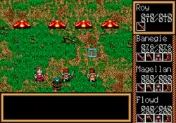 The game is a party-based RPG with randomly encountered enemies fought on a grid-like battlefield, with the player's characters positioned in the lower part while the enemies are in the upper part of the screen. Each characters requires more than one turn to get close enough to attack the opponent, otherwise they will just move towards them. Magic spells are cast in one of four directions and must be on the same line as an enemy in order to cause damage. The game ends when the main character's hit points reaches zero, regardless of the status of the rest of the party.[1]