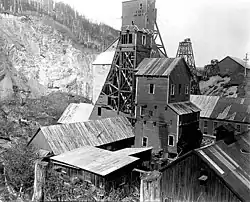 The Treadwell gold mine was on the south side of Douglas Island, .5-mile (0.80 km) east of downtown Douglas and southeast of downtown Juneau, owned and operated by John Treadwell. Composed of four sub-sites, Treadwell was in its time the largest hard rock gold mine in the world, employing over 2,000 people.[1] Between 1881 and 1922, over 3 million troy ounces of gold were extracted. Not much remains today except for a few crumbling buildings and a "glory hole". Although John Treadwell had twelve years of experience in both placer and lode mines, he was a carpenter and builder by trade who had come to Alaska prior to the Klondike Gold Rush.