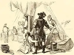 At a village run by "Japazaws" (Iapassus), he invited a few of the Patawomeck leadership and Pocahontas to tour the ship and to spend the night aboard.[13] The next morning, Argall absconded with Pocahontas to deliver her to the English at Jamestown.