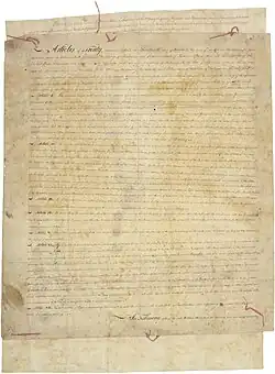 With this treaty, these Native American tribes ceded claim to a large portion of land in what is now Southeast Michigan and northwest Ohio.[2] The boundary definition in the treaty began with the "mouth of the Miami river of the lakes," or what is now known as the Maumee River at Toledo, Ohio.[2] From there the boundary ran up the middle of the river to the mouth of its tributary Auglaize River at what is now Defiance, Ohio, then due north until it intersected a parallel of latitude at the outlet of Lake Huron into the St. Clair River.