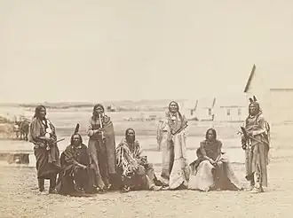 ![]() General William T. Sherman (third from left) and Commissioners in council with chiefs and headmen, Fort Laramie, 1868 | |