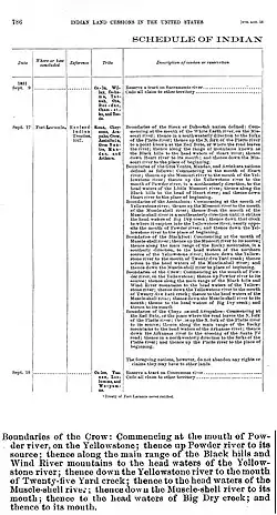 - ^ a b c d e f g h i j k l m n o p q r s t u v w x y "Fort Laramie Treaty, 1868". Avalon Project. Retrieved March 9, 2018.