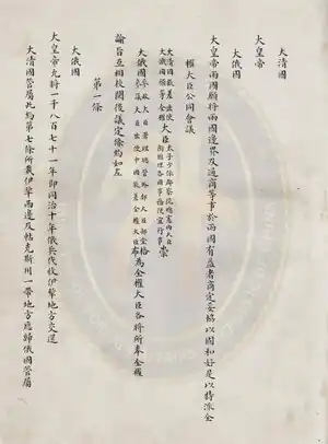 Historian S. C. M. Paine investigated the circumstances around the treaty and discovered that contrary to the official story, Chonghou was an experienced diplomat and had a career of over thirty years in negotiations with France, Britain, and the United States.[10] In fact, he led the delegation to France to offer the Chinese apology after the Tianjin Massacre in 1870.[17]