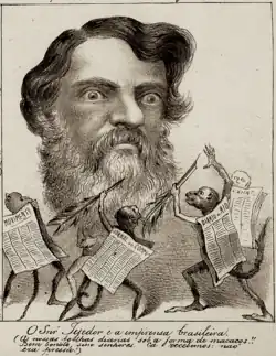 Paraguay had now made war on the much more populous Empire of Brazil, on Argentina (also more populous),[63] and threatened the Colorado faction of Uruguay, which by now had come into power. The three countries had been accustomed to thinking about Paraguay as a backward upstart and were outraged.[64] Their foreign ministers met in Buenos Aires and negotiated the Treaty of the Triple Alliance.