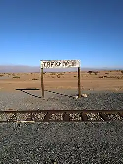 Trekkopje was the site of the Battle of Trekkopjes, a World War I battle aimed at preventing South African troops from rebuilding the railway line. A war cemetery, Trekkopje Cemetery (22°17′17″S 15°06′07″E / 22.288°S 15.102°E) features 16 graves of railway protection troops from this battle.[2]