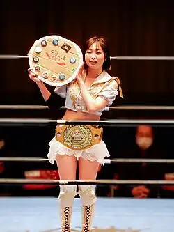 Riho was the first champion in the title's history.[1] Neko Nitta holds the record for most reigns, with six.[4][5][6][7][8][9] Nitta also holds the record for the longest reign, at 389 days, the record for the shortest reigns are held by Kakeru Sekiguchi and Minoru Fujita, who both held the title 6 days. Overall, there have been fifty-two reigns shared among thirty-four wrestlers. The current champion is Minoru Fujita who is in his second reign.