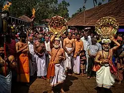 The annual temple festival (Utsavam) is a fortnight-long event beginning on Kumbham 22 of Malayalam calendar (which generally falls on 6 March) every year with the Kodiyettam (hoisting of a religious flag) and ends on Meenam 6 (which generally falls on 20 March) with Koodipiriyal (ending of this festival). In between these dates, for 11 days, Thitambu Nriththam (a form of dance with the idols of Krishna and Balarama) is held at Pookoth Nada (1 km from Trichambaram temple).
