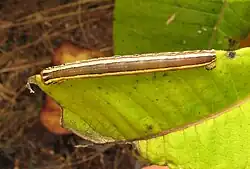 Trichordestra legitima caterpillar on milkweed
