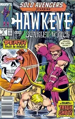 ![]() Trick Shot (right) as depicted on the cover of Solo Avengers #5 (April 1988). Art by M. D. Bright. | |