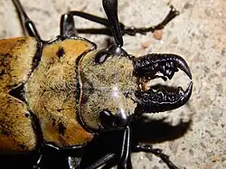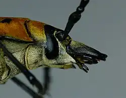 Trictenotoma grayi is a species of beetle and the only representative of the family Trictenotomidae from southern India where it is found. They can be easily mistaken for Cerambycid beetles but the antennae arising from a notch in front of the eye give away the family.