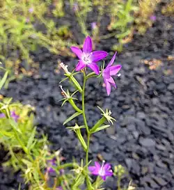 Triodanis leptocarpa, commonly called slimpod Venus' looking-glass,[2] is a species of flowering plant in the bellflower family (Campanulaceae). It is native to the United States, where it is found primarily in the Great Plains and Midwest.[3] Its natural habitat is in dry upland prairies and open rock outcrops. It is tolerant of disturbance and can be found in pastures and roadsides.[4][5]
