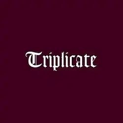 Triplicate has the most minimalist cover art of Dylan's entire discography: only the album's title is featured, printed in white lettering and "Goudy Text" font against a glossy, deep purple background.[13][14] There are two photographs of Dylan on the album's inner sleeves that are credited to John Shearer.[15] The package also contains an essay by novelist Tom Piazza, the first time liner notes have appeared in a Dylan studio album since Dylan's self-penned notes for World Gone Wrong in 1993. Among the claims in Piazza's essay is the notion that Dylan is presenting songs that "you may have thought you knew to the final decimal point" but which "you may feel you are hearing for the first time, transfigured".[16] This echoes the theme of "transfiguration" on Dylan's previous album of original material, 2012's Tempest, which Dylan explicitly discussed with Mikal Gilmore in a Rolling Stone interview at the time of that album's release.[17]