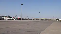 Preparation was also underway for the second new terminal, which would eventually have brought the total capacity to 20 million passengers; the completed airport is expected to strengthen Libya's position as an African aviation hub.[23] Although the government identified Tripoli airport as a "fast track" project in 2007, leading to construction work starting before the design was fully developed, the project was not finished until at least May 2011. The cost of the project had also been rising, leading to an intense round of renegotiations.[26] The project has since been halted due to the ongoing civil war that led to further damages to the airport.