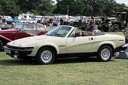 The TR7 was the first of Triumph's 'TR' line to not be offered as a convertible in its initial form, instead utilizing a 2-door coupé configuration. With the United States showing increased concern for automotive safety in the 1970s, legislations were being considered to ban open roof convertibles in said markets due to rollover risks.[8] As the US statistically represented the most lucrative market for Triumph sports cars, BL decided to avoid these potential risks by offering the TR7 only as a fixed roof coupé. However, legislation to ban convertibles was not implemented, so in 1979, Triumph introduced a convertible version of the TR7.
