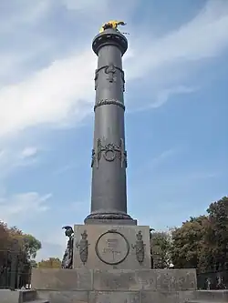 A victory column, or monumental column or triumphal column, is a monument in the form of a column, erected in memory of a heroic commemoration,[1] including victorious battle, war, or revolution. The column typically stands on a base and is crowned with a victory symbol, such as a statue. The statue may represent the goddess Victoria; in Germany, the female embodiment of the nation, Germania;[2] in the United States either the female embodiment of the nation Liberty or Columbia;[3] in the United Kingdom, the female embodiment Britannia, an eagle,[4] or a naval war hero depicted as a helmeted woman, wielding a trident, shield and olive branch.[5][6]