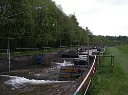 There are 515 bodies of water in the basin area. The largest of them is the Trnávka Reservoir, built on the Trnava near its mouth.[2] It was built in 1977–1981 on an area of 98 ha (240 acres). The main purpose of the reservoir is to capture alluvium brought by the water flow into the Švihov Reservoir.[5] Several fishponds are built on the upper course of the river.