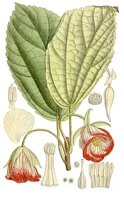 Some authorities have classified much more species but these are either in doubt or synonyms of other plants. The similar Atlantic genus Trochetiopsis was until 1981 included herein[3] but actually Helmiopsis might be a closer relative of Trochetia (as is also suggested by biogeography).[4] The formerly recognized species Trochetia richardii was reclassified as Helmiopsis richardii. Trochetia thouarsii was first synonymized with Trochetia pentaglossa and later reclassified as Nesogordonia thouarsii. Both plants are from Madagascar.