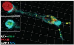 - ^ Horner, Heike; Frank, Carola; Dechant, Claudia; Repp, Roland; Glennie, Martin; Herrmann, Martin; Stockmeyer, Bernhard (1 July 2007). "Intimate Cell Conjugate Formation and Exchange of Membrane Lipids Precede Apoptosis Induction in Target Cells during Antibody-Dependent, Granulocyte-Mediated Cytotoxicity". The Journal of Immunology. 179 (1): 337–345. doi:10.4049/jimmunol.179.1.337. PMID 17579054.