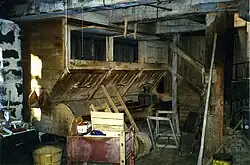 The Trois-Saumons river water mill in Saint-Jean-Port-Joli was already in operation during the French regime in New France. An 1815 engraving by Joseph Bouchette shows the Aubert de Gaspé mill surrounded by an important industrial establishment: the Harrower distillery. Around 1980, its owner, Mr. Edmond Hudon, then in his eighties, was still operating it, but in slow motion. At the time, this mill was one of the last water mills of Quebec and Canada.[1]