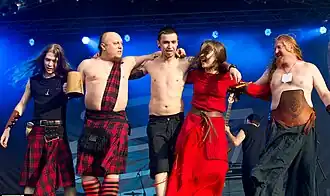 Troll Bends Fir (Russian: Тролль Гнёт Ель, romanized: Trollʹ Gnyót Yelʹ pronounced [trolʲ ˈɡnʲɵt jelʲ])[1] is a folk metal (previously folk rock)[2] band from Saint Petersburg, Russia. Band members define their style as "beer folk", most lyrics are based on Scandinavian mythology and, as well as the band's image, are related to beer and brewing. TBF has its own recognizable sound combining traditional metal music instruments with violin and Irish whistle.