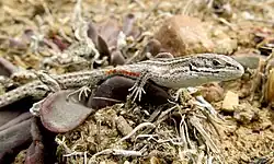 Tropidosaura montana, also known commonly as the common mountain lizard and the green-striped mountain lizard, is a species of lizard in the family Lacertidae. The species is endemic to South Africa. There are three recognized subspecies.[2]