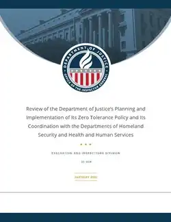 In January 2021, the Inspector General for the Department of Justice concluded an investigation into the "zero tolerance" policy, finding that: department leaders underestimated the difficulty of implementing it, failed to tell local prosecutors and others that children would be separated; failed to understand that separations would last longer than a few hours; and failed to halt the policy after that was discovered.[152] The findings led Rod Rosenstein, who had been Trump's Attorney General at the time the policy was enforced, to admit that family separations "should never have been implemented".[153] According to an NBC News report on the investigation, "The report could provide a road map for the incoming Biden administration to investigate those responsible for a policy President-elect Joe Biden has called criminal."[154]