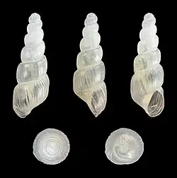 This species of snail has a shell which is light in color, and which can reach 5 mm in length.[2]