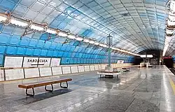 The Tsentralno–Zavodska line (Ukrainian: Центрально-Заводська лінія) is the first and only line of the Dnipro Metro in Dnipro, located in east Ukraine. The line's short length, makes the Dnipro Metro system the shortest metro system in the world.[2] The six station segment was opened on 29 December 1995 and runs from the Vokzalna station west to the terminus at Pokrovska. Only the system's depot, Diivka, is located west of Pokrovska station.
