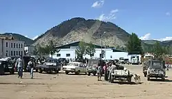 Tsetserleg (/ˈtsɛtsərlɛɡ/; Mongolian: Цэцэрлэг [t͡sʰít͡sʰɘrɮɘk] – lit. 'Garden'), also romanized as Cecerleg, is the capital of Arkhangai Aimag (province) in Mongolia. It lies on the northeastern slopes of the Khangai Mountains, 600 kilometres (370 miles) southwest of Ulaanbaatar. It has a population of 16,553 (2000 census, with Erdenebulgan sum rural territories population was 18,519), 16,618 (2003 est.), 16,300 (2006 est.).[1]