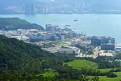 Tseung Kwan O Industrial Estate is located in the southeastern part of the town.[14] Apart from various manufacturing industries that could not be housed in conventional multi-storey industrial buildings, the estate is also where a number of mass media outlets locate their headquarters at, including TVB City, the headquarters of Hong Kong's largest television broadcaster, and news agencies like Apple Daily (forcibly closed on 24 June 2021) and Sing Tao Daily. The industrial estate hosts a high concentration of data centres due to the fact that three out of the eight submarine communications cables connecting to Hong Kong make their landfall at the marine frontage of the estate.[15][16]