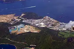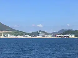 Tseung Kwan O Industrial Estate has an area of 75 ha[1] (other sources mention 86 ha[2] and 95 ha[3]). It is located 3 km south east of Tseung Kwan O New Town.[1] The Estate has a marine frontage and was partly built on reclaimed land. Reclamation and servicing work were completed in 1997.[2]