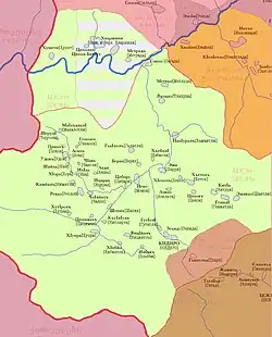 - ^ Olson, James Stuart; Pappas, Lee Brigance & Pappas, Nicholas Charles (1994), An Ethnohistorical Dictionary of the Russian and Soviet Empires, p. 199. Greenwood Publishing Group, ISBN 0-313-27497-5.