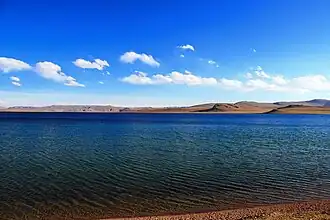 Tso Ngön (Tibetan: མཚོ་སྔོན, Wylie: mtsho sngon; Chinese: 错鄂; pinyin: Cuò È)is a plateau lake in Xainza County, Tibet Autonomous Region, southwest of China. The lake is part of the Siling Lake drainage system. The shoreline is deeply indented by bays, and the lake is dotted by many islands. It is 28.5 km long and 16.7 km wide and has an area of 269 square km.[1]