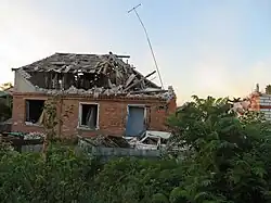 On 24 February 2022, the village was occupied by the Russian Armed Forces, after which it became a stronghold for tank attacks on Kharkiv and artillery shelling of the Pivtsyncha Saltivka district.[13][14][15] Russian media outlets present this as if the Ukrainian Armed Forces were shelling the village for no reason, ignoring the fierce fighting near the Kharkiv bypass.[16] Residents are not allowed to evacuate to the territory controlled by Ukraine, and the delivery of humanitarian aid from there is also blocked. Instead, Russian military personnel are offering residents to evacuate to the occupying country.[17] The Russian occupiers lost control of the village on 7 May 2022.[18] The shelling of the village continued later.[19]