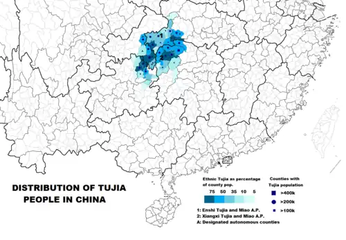 - County-level distributions of the Tujia