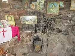 Quite popular throughout Armenia, such shrines are often on hilltops, at the sources of springs, or just outside villages. Some researchers have linked them to a proto-Indo-European deity cognate with Krishna or Shiva, a mischievous beautiful young man inhabiting the boundary between settlement and wilderness. Visiting Tukh Manuk shrines is traditionally popular with women. They are also visited by the Yazidis.[5][6] Pilgrims gather to make offerings or sacrifices for the curing of illnesses and burn candles.[7]