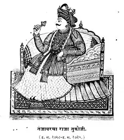Tukkoji Bhonsle (1677–1736) was the fourth Maratha ruler of Thanjavur, located in South India. He was from the Bhonsle dynasty and was the son of Ekoji I as well as the younger brother of Shahuji I and Serfoji I. Tukkoji ruled Thanjavur from 1728 to 1736.