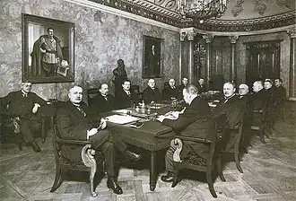 Antti Tulenheimo's cabinet was the Government of Finland from March 31, 1925 to December 31, 1925. It was formed between the National Coalition Party and the Agrarian Party, and had four ministers from the National Coalition Party, five from the Agrarian Party and four neutral. The cabinet lasted 276 days in office.[1] The cabinet resigned after its proposal for defense spending was defeated in the parliament.[2]