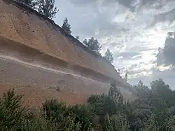 Sedimentary layers along O. B. Riley Rd on south side of park