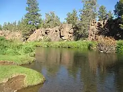Tumalo State Park was established in 1954.[2][3][4] It is located approximately 5 miles (8.0 km) northwest of Bend. The park preserved a scenic portion of the Deschutes River where basalt cliffs extend down to the river.[2][3][4][5] It also created a day-use picnic area and a public campground.[2][3][4][5]