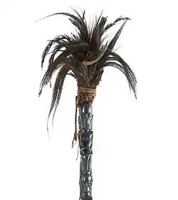A tunggal panaluan is a magic staff used by shamans of the Batak people, who live in the highlands of North Sumatra, Indonesia. Traditionally the tunggal panaluan is made from wood of a specific tree and carved with human figures and embellished with horsehair and cooked human brain, both procured from sacrificial victims.