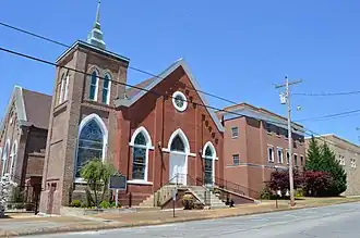 Recovery came in the 1880s and 1890s, driven by industrial development in neighboring Sheffield. The majority of commercial buildings date from the 1880s through the 1930s, while residential buildings of the period display styles such as Queen Anne, Folk Victorian, Bungalow, and Tudor Revival. Other notable buildings in the district include the Colbert County Courthouse, built in 1909; St. John's Episcopal Church, built in 1852 as one of the earliest Carpenter Gothic churches in Alabama; and Deshler Stadium, a Works Projects Administration project completed in 1941.[2]