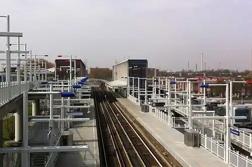 Tussenwater is an above-ground subway station of the Rotterdam Metro lines C and D. The station is located in the borough Hoogvliet in Rotterdam.